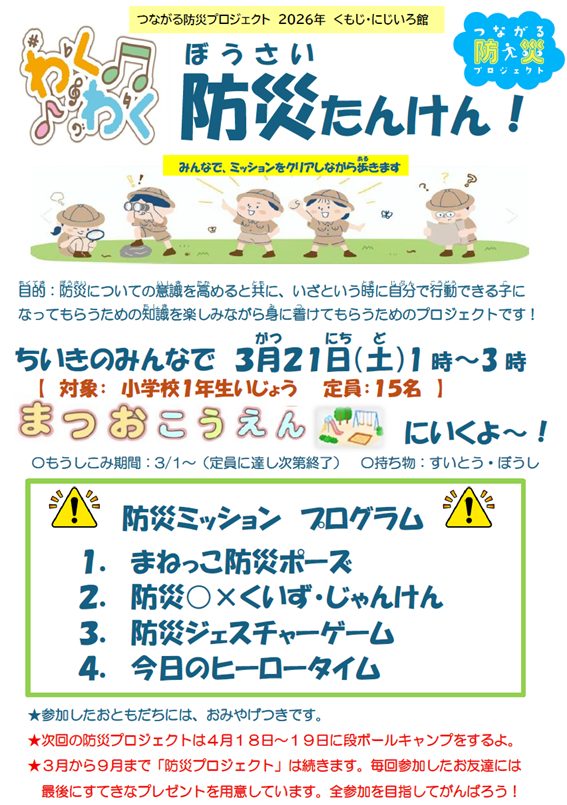 くもじ・にじいろ館から、避難場所である「まつおこうえん」まで