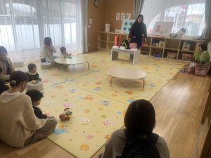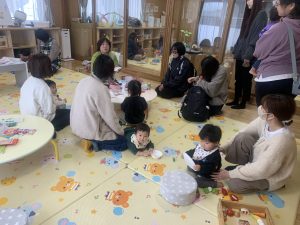 大雪のため、予定していた日から1週間遅らせて実施しました。この日も大雪の予報でしたがたくさんの方が集まってくれました。節分は季節の変わり目で、その日には災いがおきやすい。豆まきをすることで災いを払うというパネルシアターをして、「おにわーそと」とみんなで言った後、災いを防ぐための「防災バックについて」防災士の石原さんから紹介していただきました。