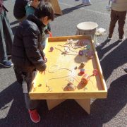 段ボールで作った防災あそびを行う予定でしたが、強風のためストラックアウトになりました。