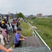 途中で、川に下りていく階段があったが、少し雨が降った後で大きな水たまりが出来ていたため、川に降りることはできなかった。こどもたちも「勝手に川に下りたら危ない」と感じたようだった。