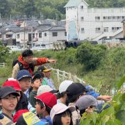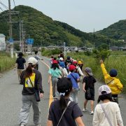 こどもたちは道の途中でいろいろな草木を見て、触って、鳥が飛んで来ているのを間近に見て、嬉しそうにしていた。川が溢れたらどこに逃げる?の問に「避難所!」と答えは返ってきたが、具体的には分かっていないし、家庭内での打ち合わせも出来ていないようであった。