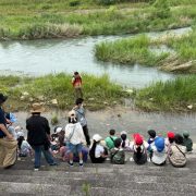 途中で、川に下りていく階段があったが、少し雨が降った後で大きな水たまりが出来ていたため、川に降りることはできなかった。こどもたちも「勝手に川に下りたら危ない」と感じたようだった。
