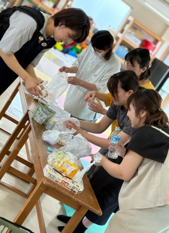 「防災について普段から意識して備えはしていたものの、自治体からの支援物資もあるしな~と軽く考えていました。今回、離乳食の作り方だったり、備えについてお話をお聞きしたことで、何がどのくらい必要なのか、具体的にイメージすることができ、備えを見直すきっかけになりました。また、皆さんと情報交換できて、実際に南海トラフなどが起きた時に、自分がどう動けばいいのだろう…と漠然とした不安があったのが、周りと情報共有しながら、頼りながら過ごしていけば(児童館のLINEを活用しながら)いいのだと分かりました!ありがとうございました。」