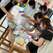「防災について普段から意識して備えはしていたものの、自治体からの支援物資もあるしな~と軽く考えていました。今回、離乳食の作り方だったり、備えについてお話をお聞きしたことで、何がどのくらい必要なのか、具体的にイメージすることができ、備えを見直すきっかけになりました。また、皆さんと情報交換できて、実際に南海トラフなどが起きた時に、自分がどう動けばいいのだろう…と漠然とした不安があったのが、周りと情報共有しながら、頼りながら過ごしていけば(児童館のLINEを活用しながら)いいのだと分かりました!ありがとうございました。」